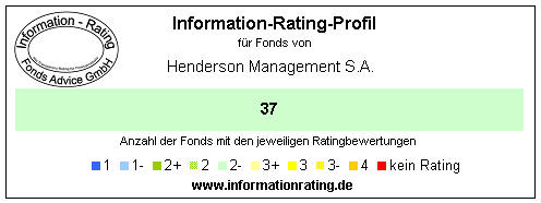 Basis der Bewertungen sind die jeweils Fonds Advice GmbH vorliegenden wesentlichen Anlegerinformationen, Verkaufsprospekte, Jahresberichte bzw. Halbjahresberichte, Factsheets, Internet-Informationen der Verwaltungsgesellschaft sowie die Auswertung weiterer Informationen. Die Bewertungsstufen des Information-Rating sind: 1 (beste Bewertungsstufe), 1-, 2+, 2, 2-, 3+, 3, 3-, 4, kein Rating (niedrigste Bewertungsstufe) und keine Daten. Weitere Details zum Rating-Verfahren finden Sie ► hier.