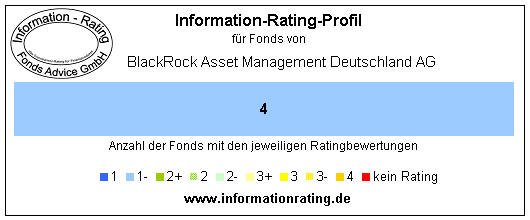Basis der Bewertungen sind die jeweils Fonds Advice GmbH vorliegenden wesentlichen Anlegerinformationen, Verkaufsprospekte, Jahresberichte bzw. Halbjahresberichte, Factsheets, Internet-Informationen der Verwaltungsgesellschaft sowie die Auswertung weiterer Informationen. Die Bewertungsstufen des Information-Rating sind: 1 (beste Bewertungsstufe), 1-, 2+, 2, 2-, 3+, 3, 3-, 4, kein Rating (niedrigste Bewertungsstufe) und keine Daten. Weitere Details zum Rating-Verfahren finden Sie ► hier.