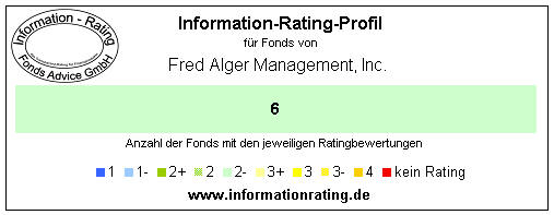 Basis der Bewertungen sind die jeweils Fonds Advice GmbH vorliegenden wesentlichen Anlegerinformationen, Verkaufsprospekte, Jahresberichte bzw. Halbjahresberichte, Factsheets, Internet-Informationen der Verwaltungsgesellschaft sowie die Auswertung weiterer Informationen. Die Bewertungsstufen des Information-Rating sind: 1 (beste Bewertungsstufe), 1-, 2+, 2, 2-, 3+, 3, 3-, 4, kein Rating (niedrigste Bewertungsstufe) und keine Daten. Weitere Details zum Rating-Verfahren finden Sie ► hier.
